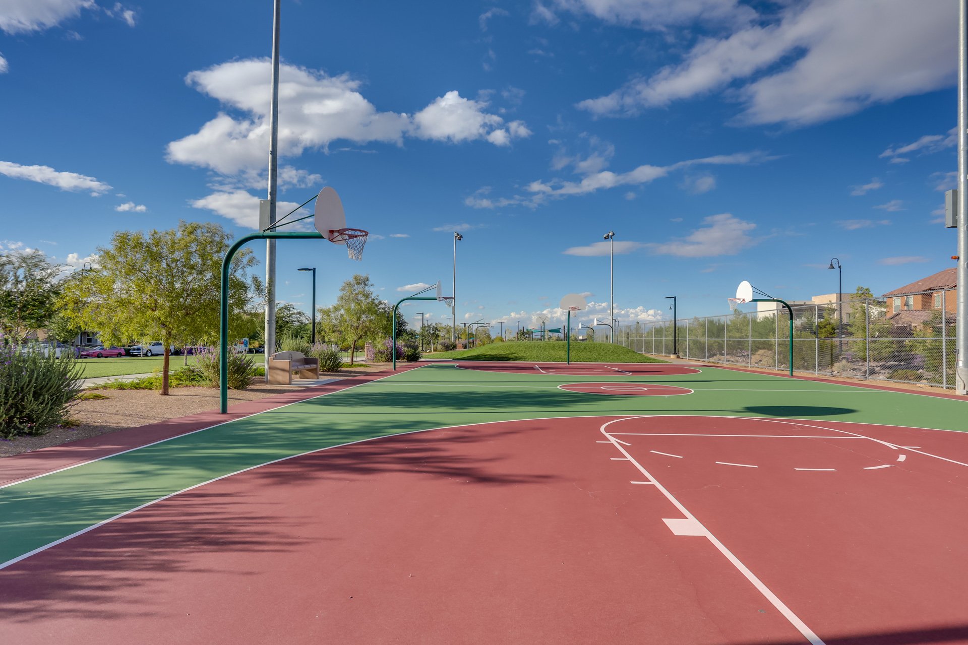 These amenities provide pools, sports courts, playgrounds, and walking paths throughout the community.